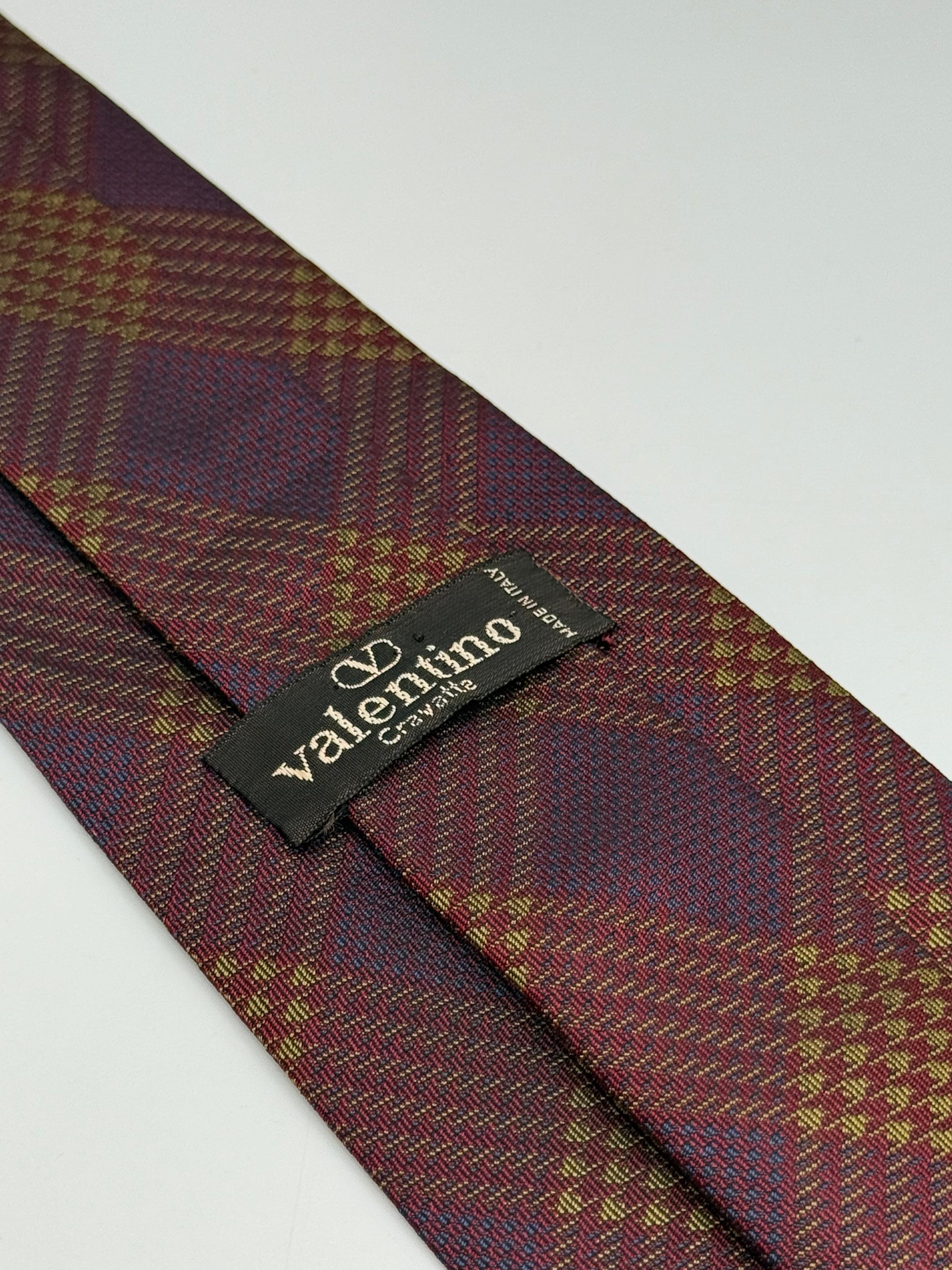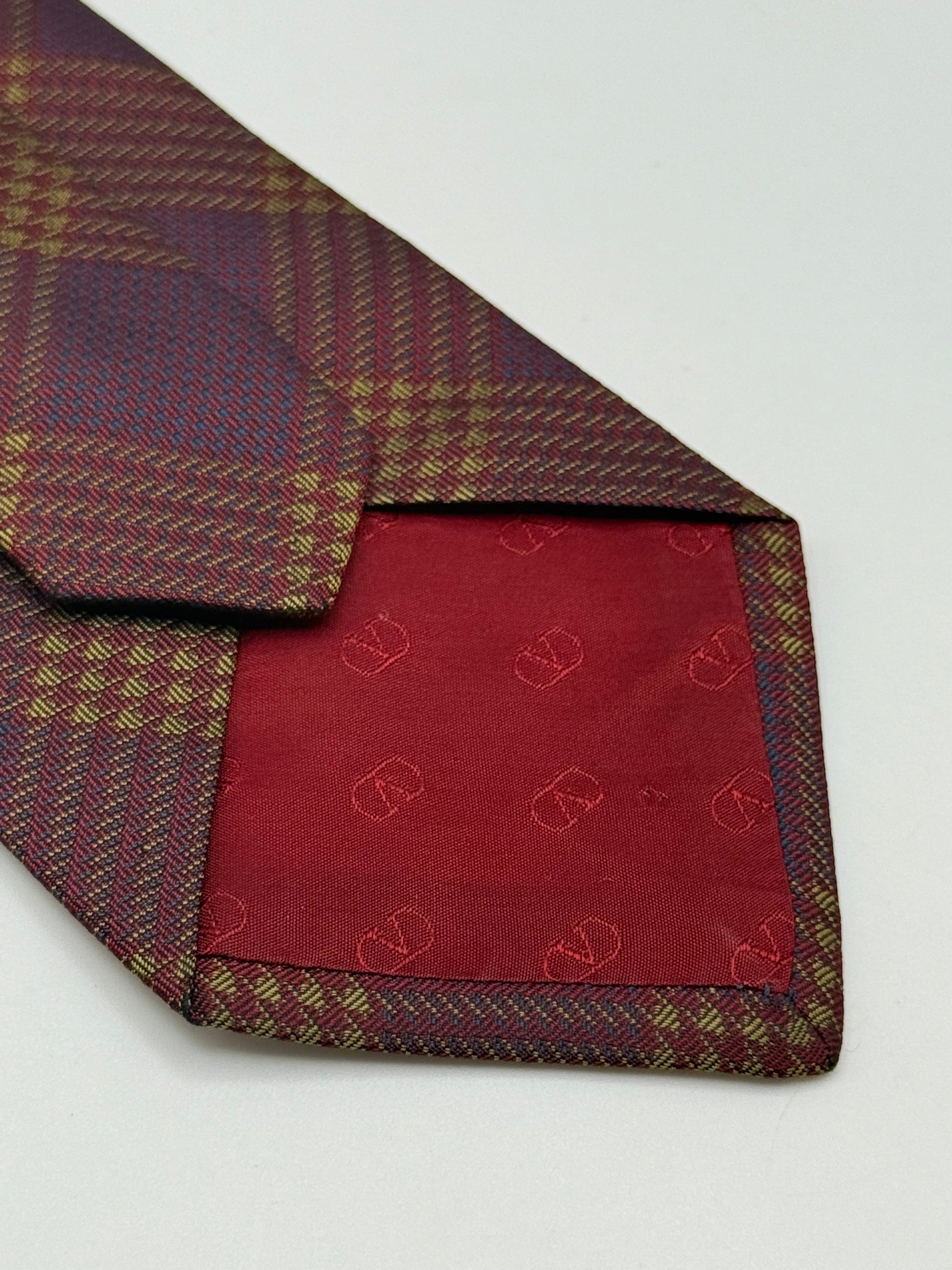 Burgundy checked silk tie