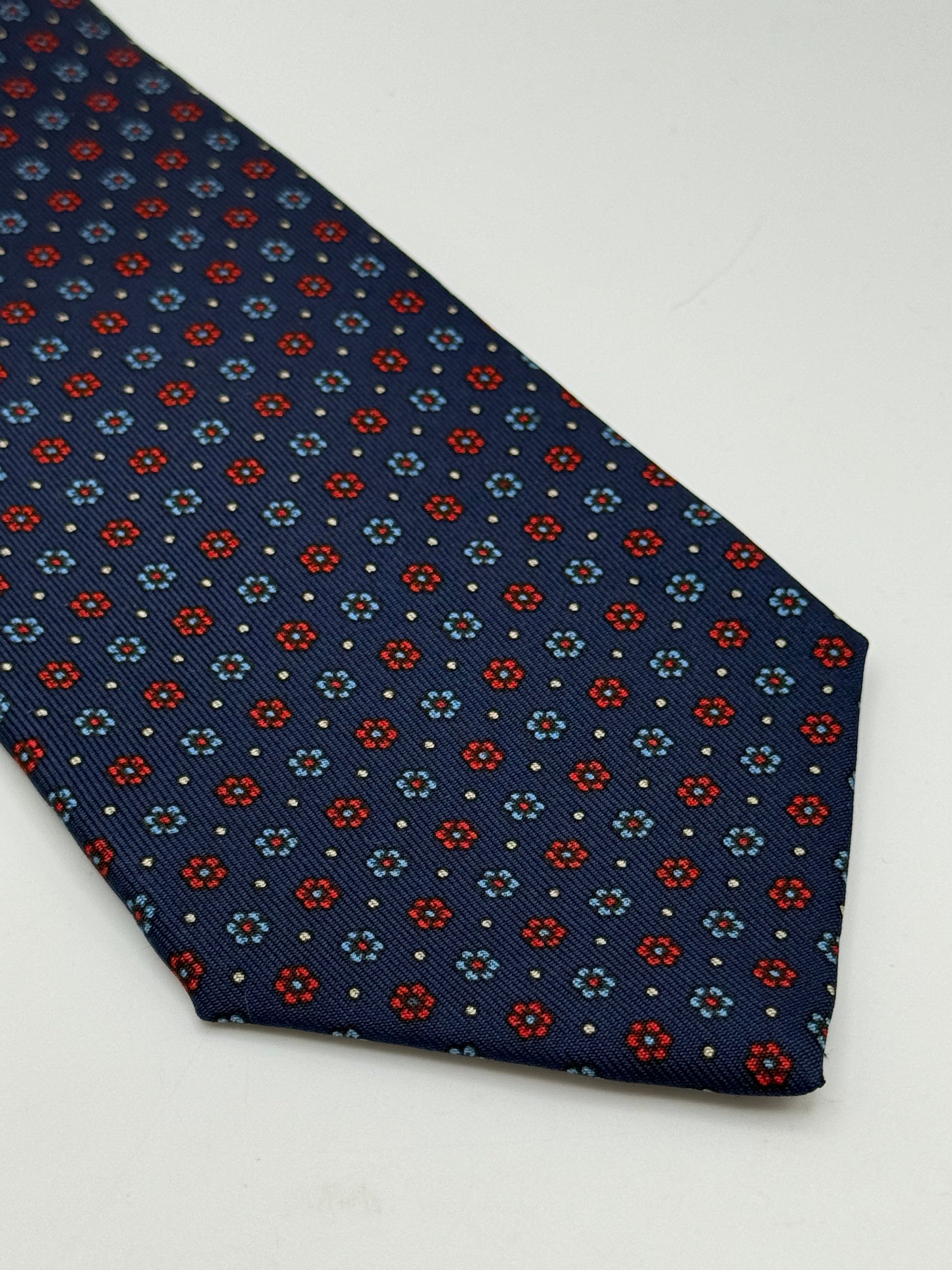 Dark blue twill silk tie whit small flower pattern